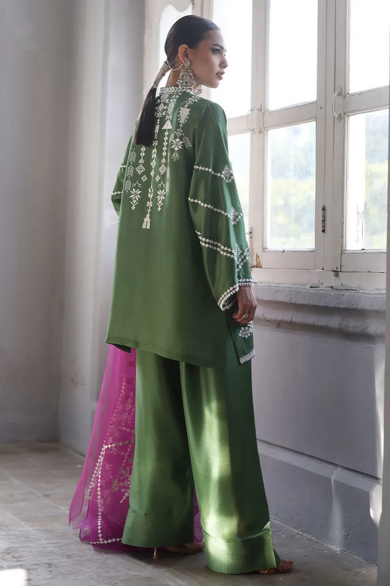 Color: Shirt and Shalwar: Artichoke Green, Dupatta: Magenta